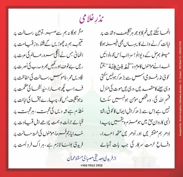 کوئ نذرِ غلامی اِس سے بڑھ کر ہو نہیں سکتی