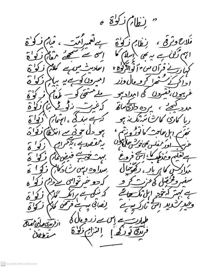 فلاح و ترقی ، نظامِ زکٰوۃ ہے تعمیرِ اُمّت ، قیامِ زکٰوۃ کہا رب نے قرآں میں ” اٰتُوالزّکٰوہ” احادیث