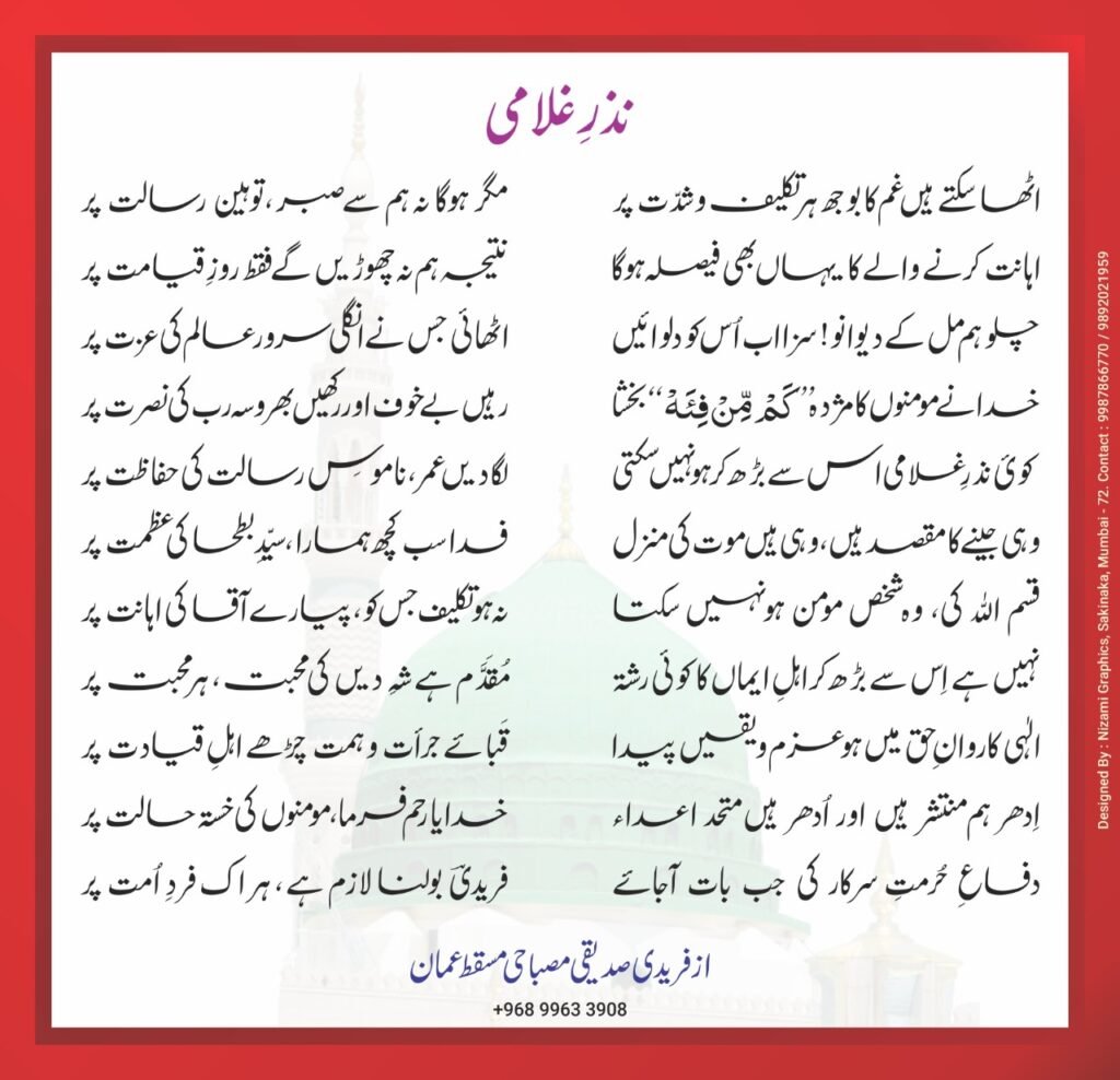 پروانۂ دل ، شمعِ نبوت پہ فدا ہے ہستی مری ، ناموسِ رسالت پہ فدا ہے جو کچھ مجھے مولیٰ