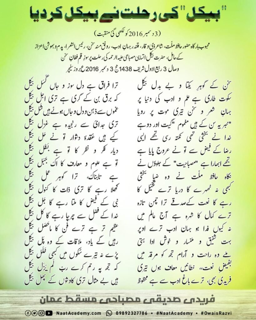 (3 دسمبر 2016کو لکھی گئ منقبت) محبوب بارگاہ حضور حافظ ملّت ، شاعر ذی وقار ، قلندر جہانِ ادب ،